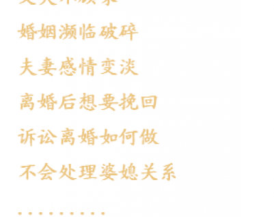 眾夢(mèng)尋緣可以幫你解決任何情感問題,無論你是想要離婚但是不知道該怎么做(離婚咨詢);還是夫妻感情平淡(感情變淡);還是挽回丈夫或者妻子(婚姻挽回);亦或是不知道如何和家人相處(婆媳關(guān)系)等等。我們都有相應(yīng)的情感導(dǎo)師,幫你解決你在婚姻中的情感問題,為你的婚姻指明方向。